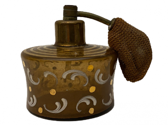 1930 POMPALI SİSTEM ÜZERİ MİNE İŞLEMELİ BOHEM CAM PARFÜM ŞİŞESİ